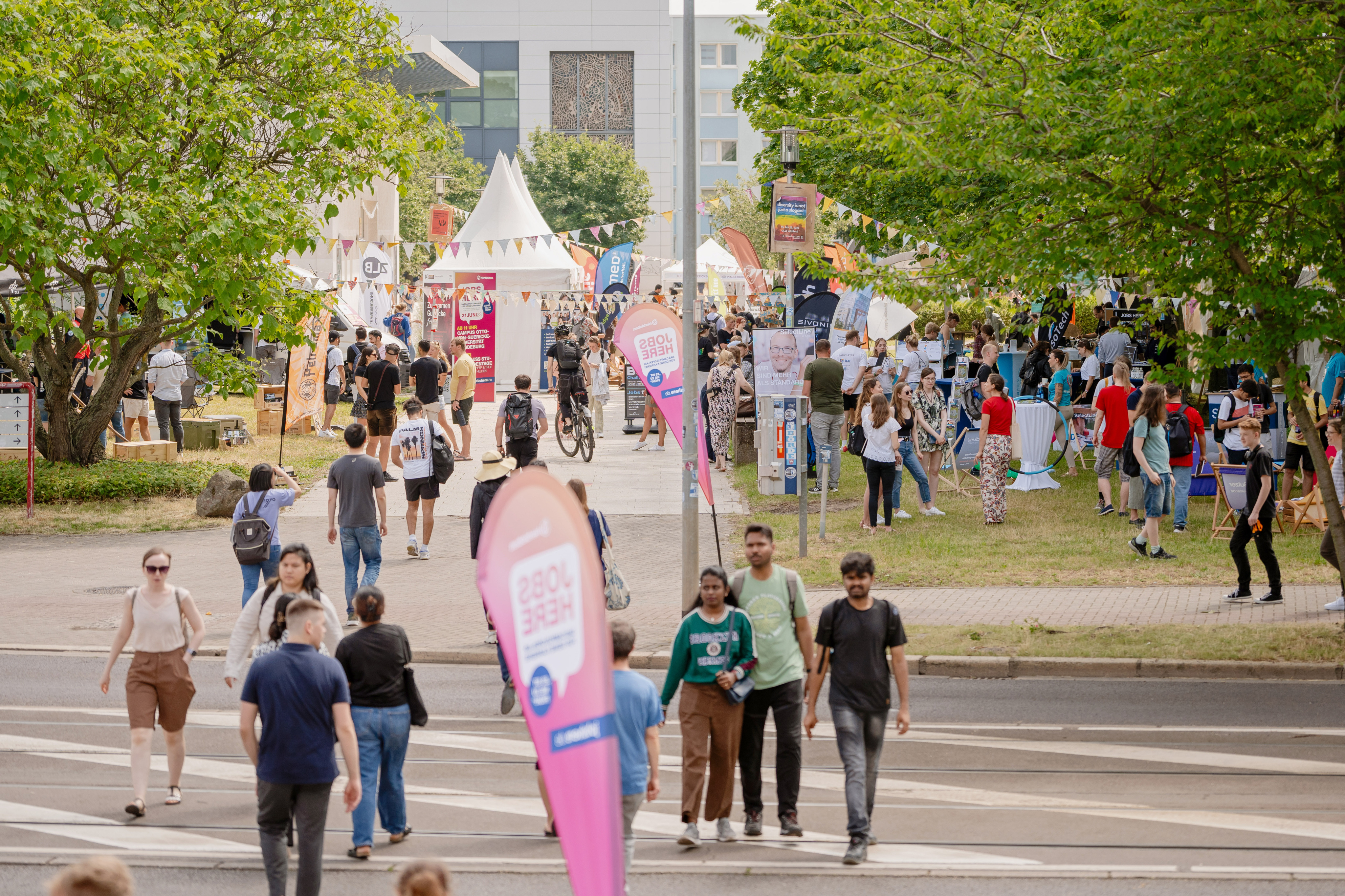 Save the Date: Am 19. Juni 2024 werden Karriereträume wahr! Der Campus der Otto-von-Guericke-Universität Magdeburg verwandelt sich an diesem Tag zu einem spektakulären Open-Air Jobfestival. Begleitet von entspannter Musik, leckerem Streetfood und den besten Jobs in Sachsen-Anhalt hast du die Chance unzählige lokale Unternehmen kennenzulernen. Ob fürs nächste Praktikum, einen interessanten Studi-Job oder die erste Stelle nach dem Studium — die Möglichkeiten sind riesig!