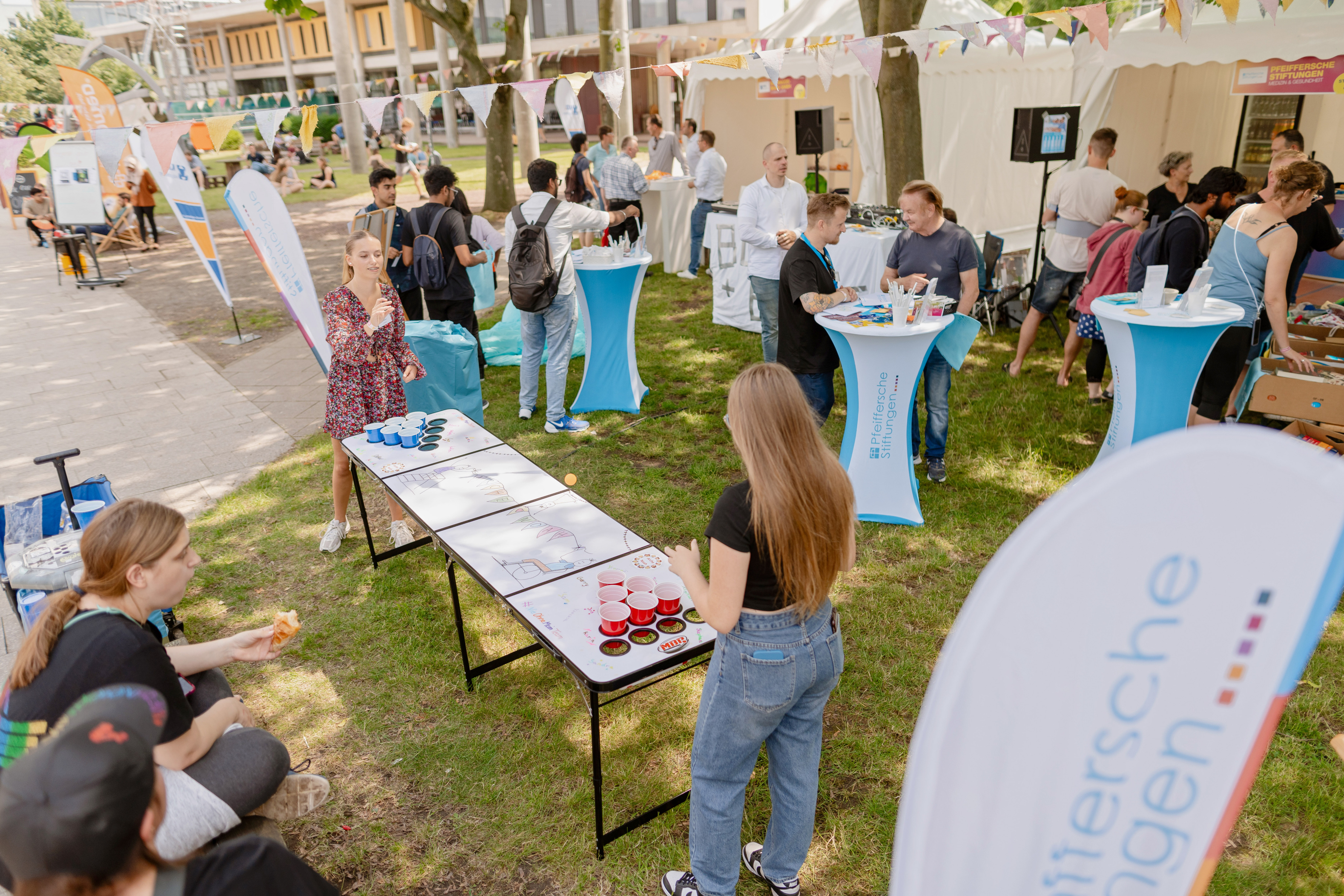 - An coolen Aktionen mangelt es natürlich auch nicht, Beerpong mit deinem neuen Arbeitgeber oder eine Runde Tischkicker zocken mit der neuen Lieblingskollegin, alles ist möglich! Auch die interaktiven Stages geben einiges her: Makramee, spannende Panels... you choose!