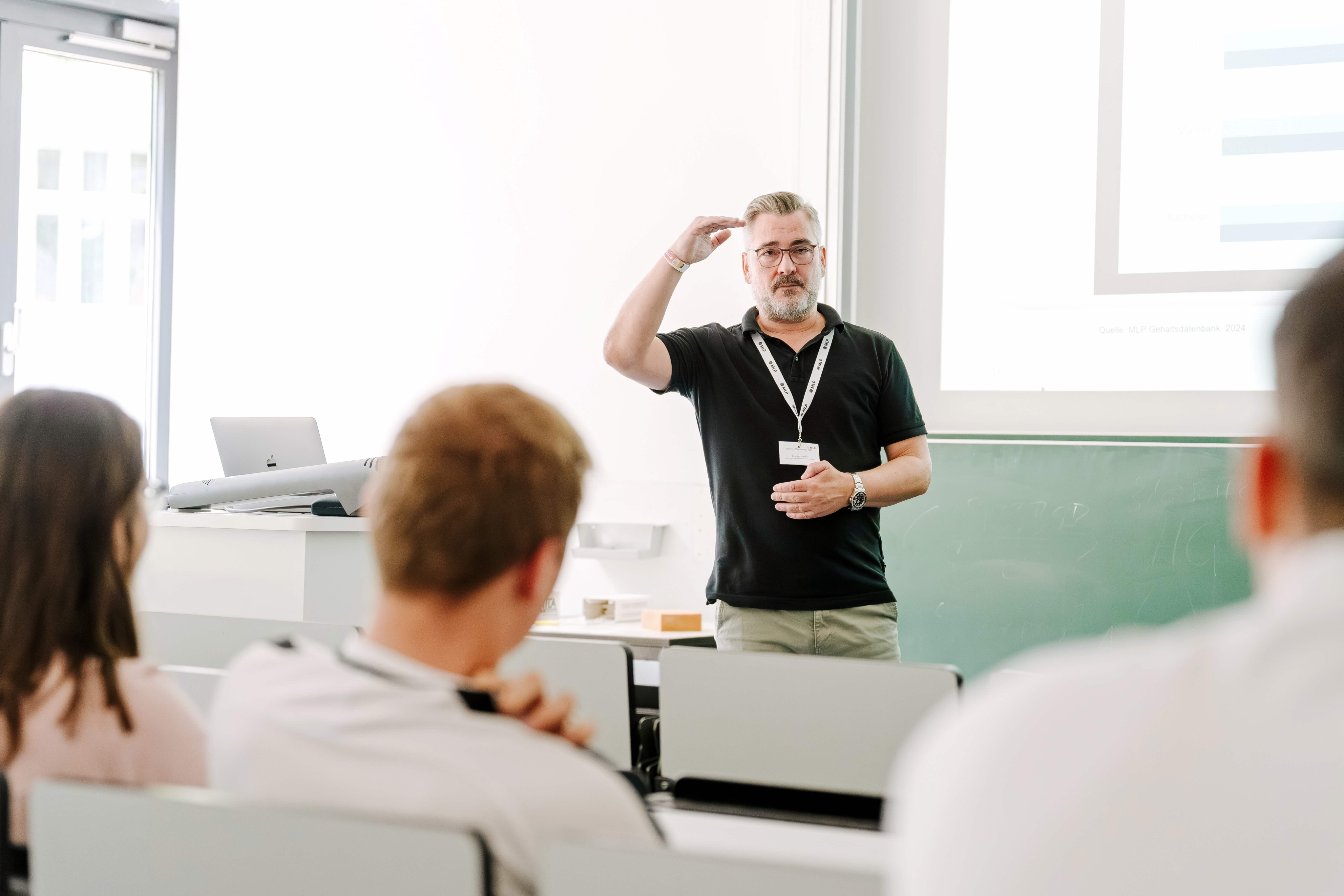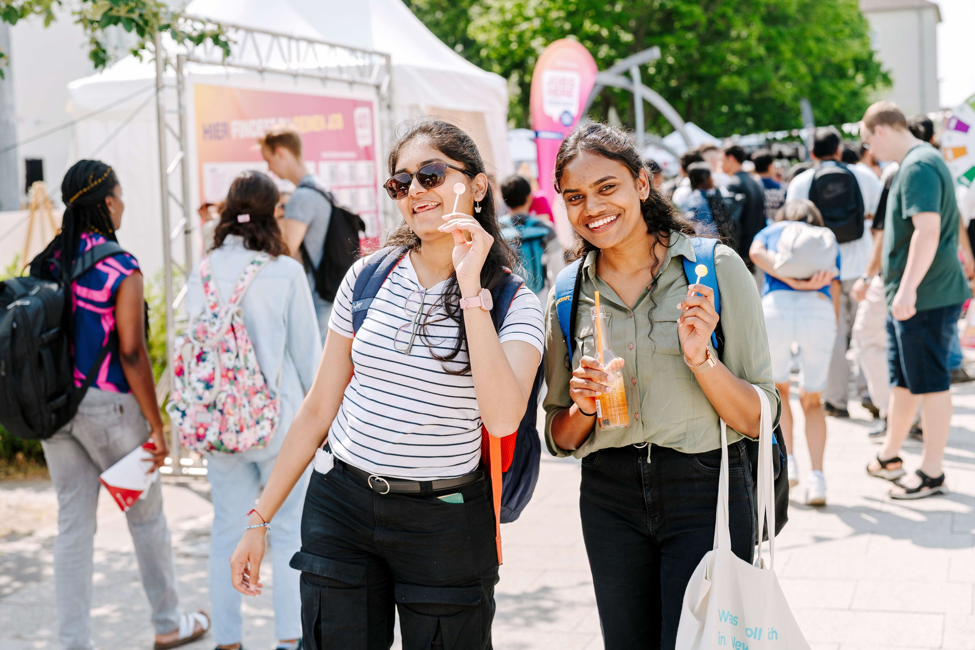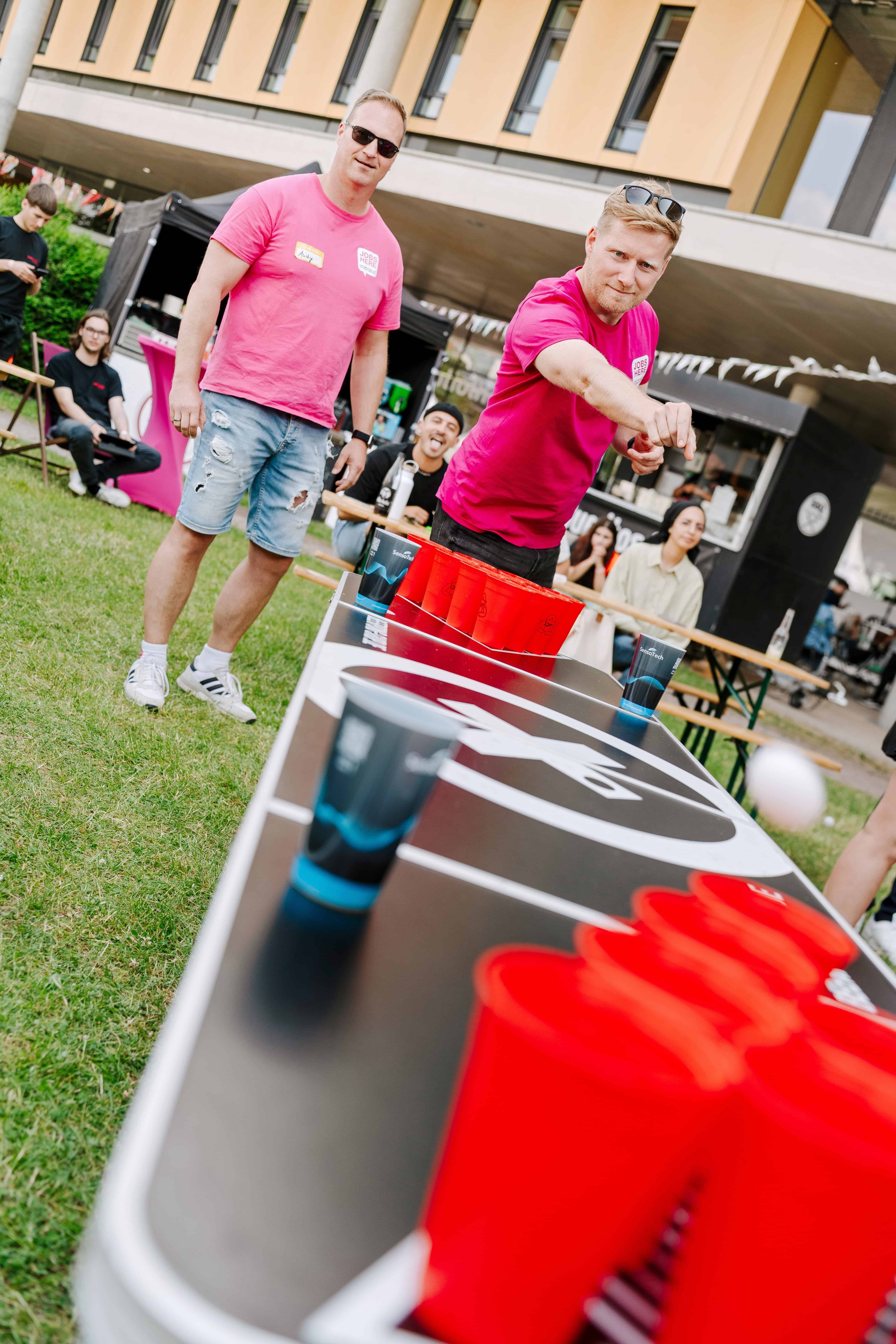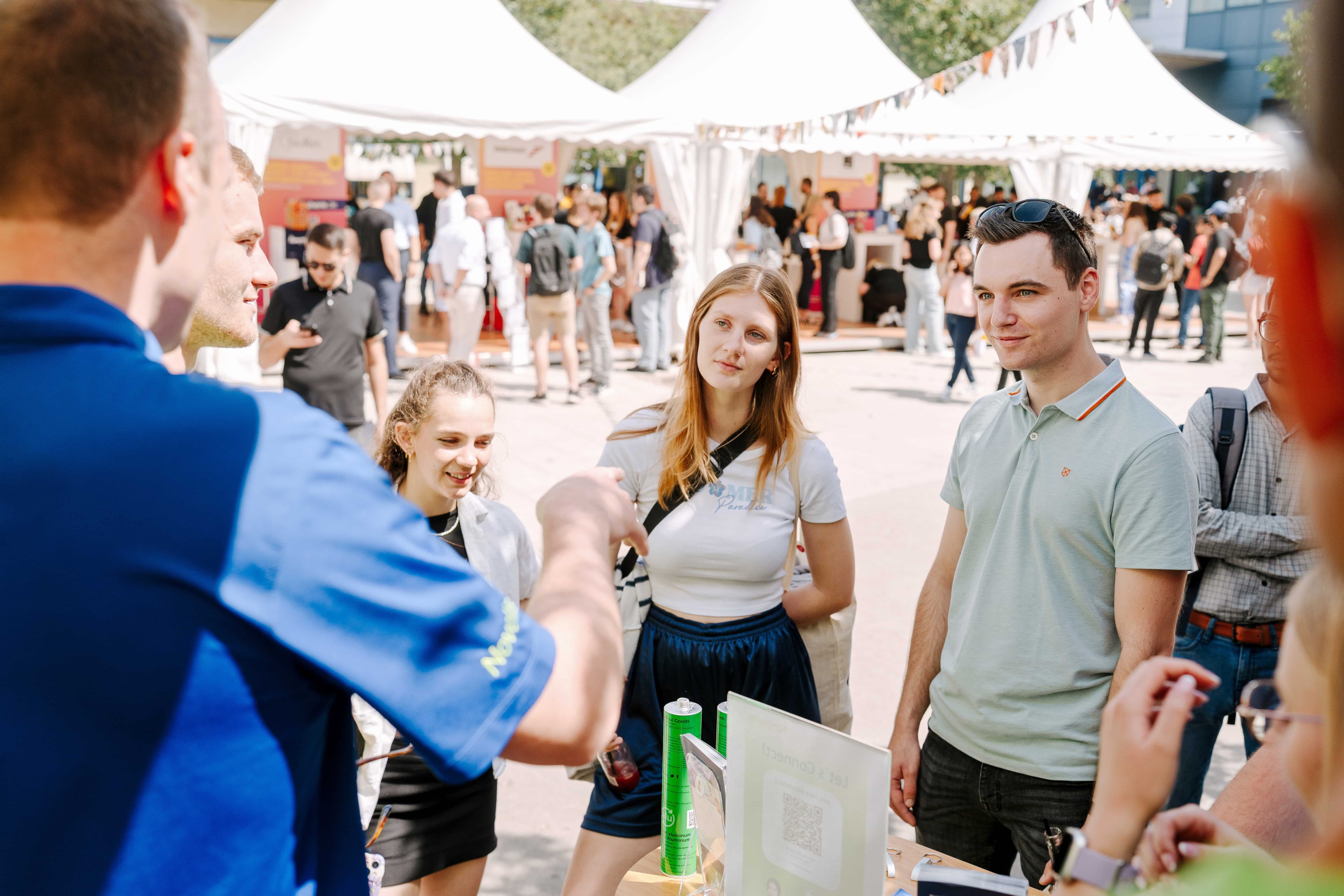 Auch die Live-Stage war für viele Besucher:innen ein echtes Highlight. In diesem Jahr sorgte die Band Ka:ma mit berührender Live-Musik und Mitmachmomenten für echte Festivalstimmung. Ein besonders ehrenvoller Moment am Vormittag: Die engagiertesten Botschafter:innen des Fit-for-Career-Programms wurden feierlich ausgezeichnet. Workshops für Internationals wie „HOW TO JOBMESSE“ sowie allgemeine Crashkurse für Studierende zu den Themen „Bewerbungen“ und „Gehaltsverhandlungen“ fanden großen Anklang und sorgten für interaktive Beteiligung. Wer den Nervenkitzel suchte, konnte beim Beerpong-Turnier mitfiebern – die Teilnehmenden lieferten sich ein spannendes Kopf-an-Kopf-Rennen! Ein buntes Programm für bunte Karrierestarts. :)